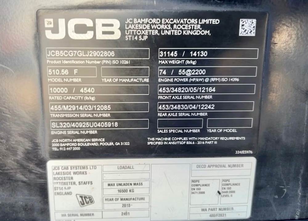 SN: JCB5CG7GLJ2902806